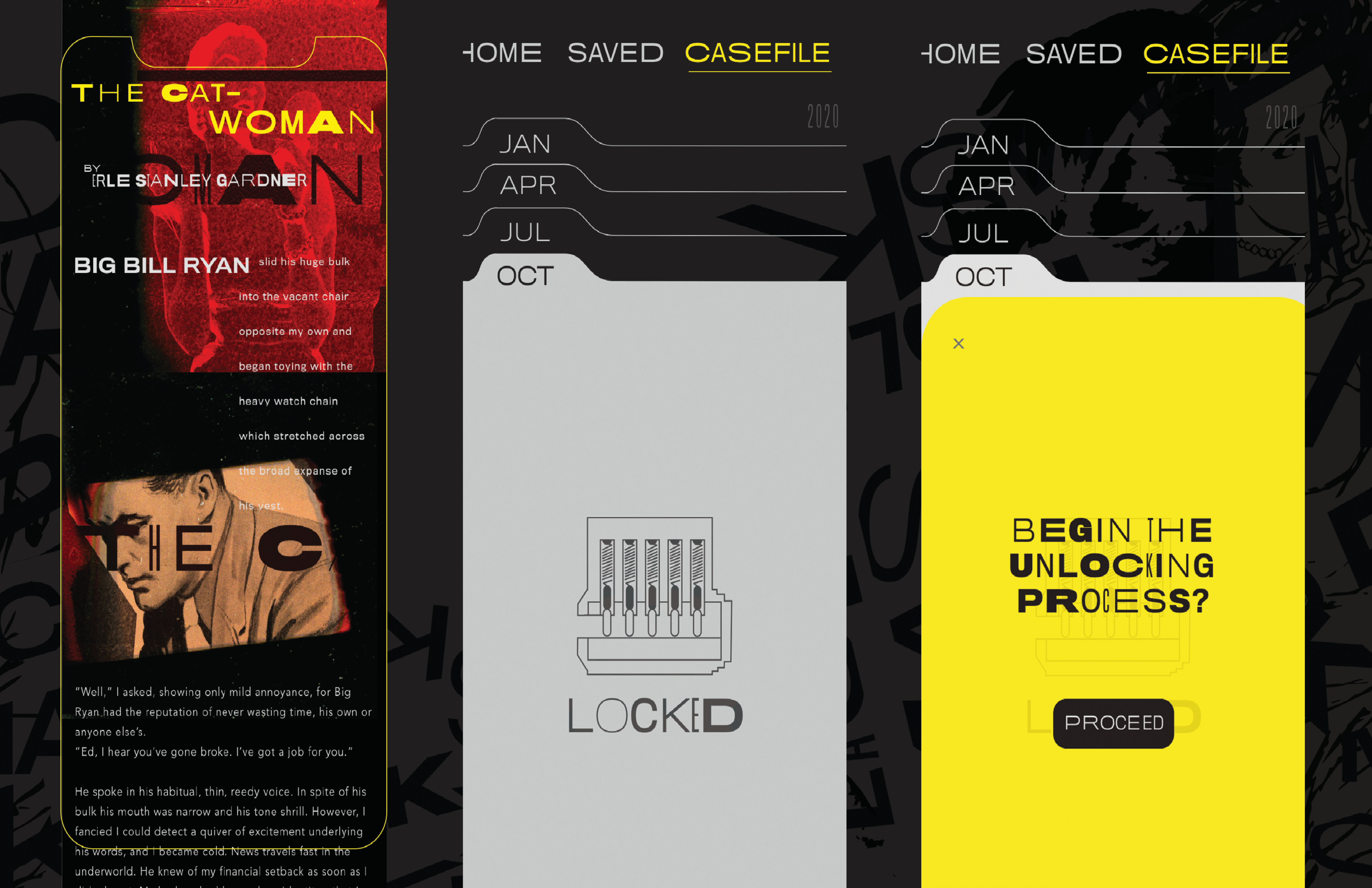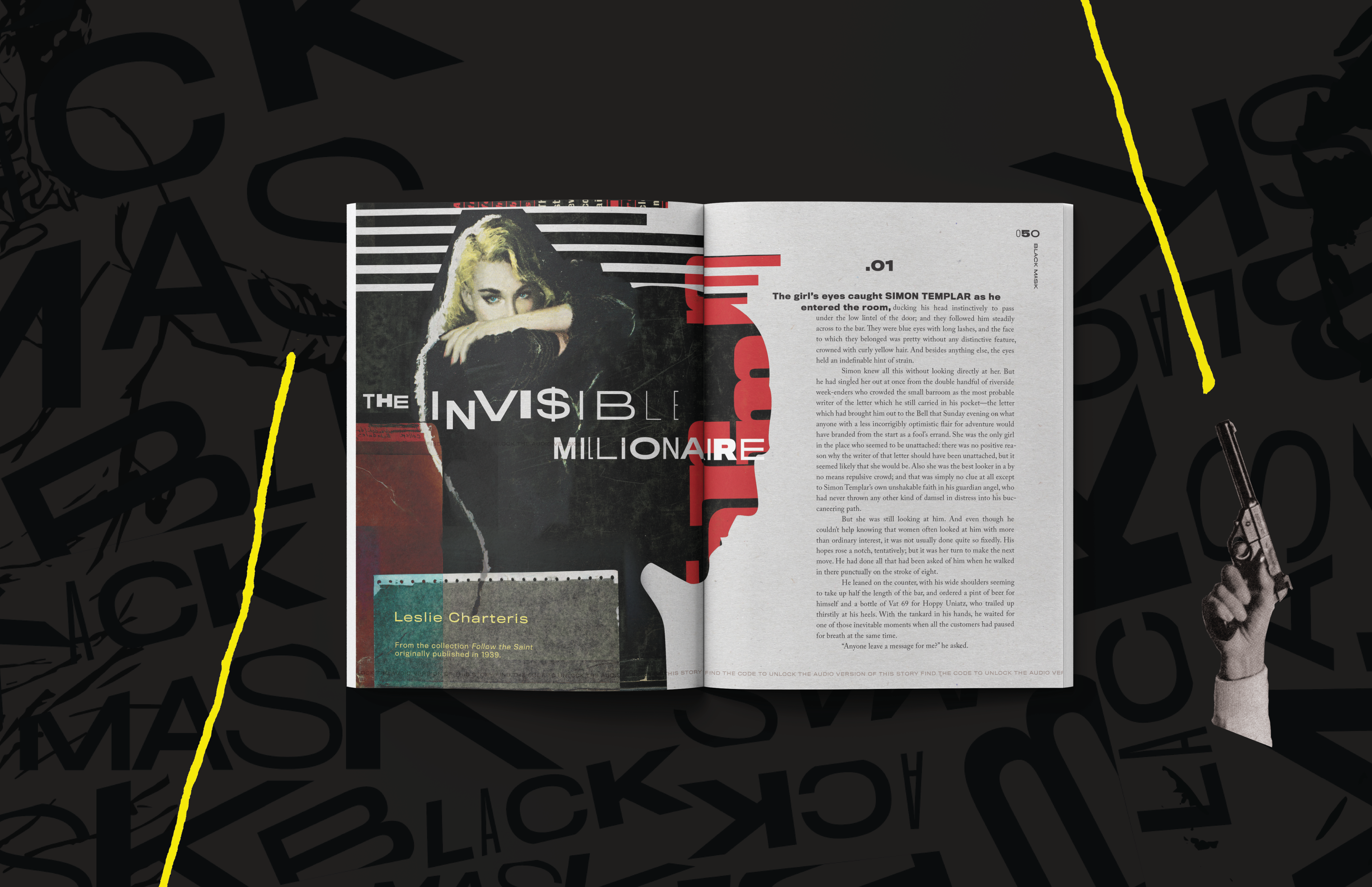 Inspired by the interactive gameplay of ARGs (Alternate Reality Games) and mystery in a box products, my idea was to revive the iconic Black Mask magazine. The return was meant to celebrate the 100 year anniversary of the pulp magazine known for publishing many mystery stories by authors that became the most well known in the genre.